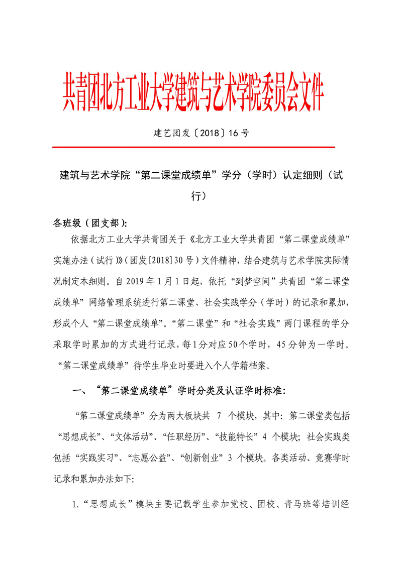 建艺团发〔2018〕16号--澳门太阳成集团“第二课堂成绩单”学分(学时)认定细则(试行)