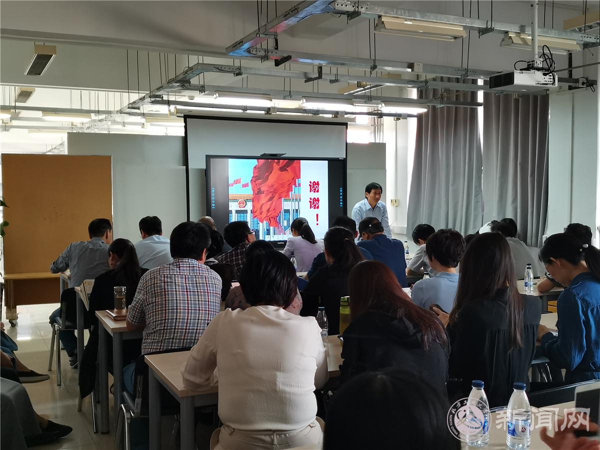 学院特邀请马克思主义学院张晓晨老师做了题为《习近平新时代中国特色社会主义思想学习纲要》的学习辅导报告,她从中国特色社会主义进入新时代、新时代中国共产党的历史使命、习近平新时代中国特色社会主义思想三个方面解读,带领广大教师深入理解“不忘初心、牢记使命”的丰富内涵和习近平新时代中国特色社会主义思想的理论精髓。