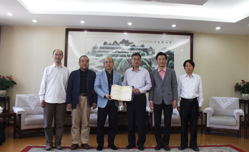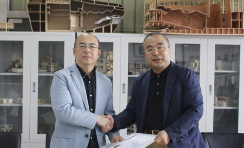 近日,北京市建筑设计研究院有限公司董事长、总建筑师朱小地访问太阳成官网。王晓纯校长会见了朱小地董事长,探讨了实践实习教学基地合作事项,并向朱小地董事长颁发了客座教授证书。