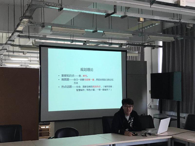 交流会分经验分享、自由交流两个环节进行。在经验分享环节中,四位同学分别就自身经历、体会提出了英语、政治等基础课和专业课最后三个月的复习技巧和方法。建筑学研究生赵宇学姐提出英语复习的关键在于多看、多读、多写、多做。她说“最后三个月很难提高自己的词汇量,但很容易提高自己对阅读理解的敏感度,要注重温故知新,持之以恒。对于城乡规划学专业课的复习,计珂然学长提出了“知识点反复默写,画图题落实练习,规划热点重点关注”的复习策略。