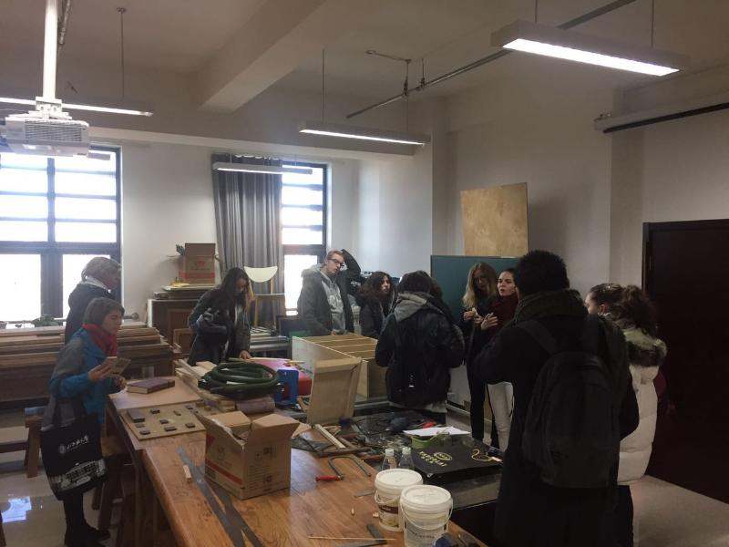 我学院王彪老师以及外教安娜、欧阳丹等陪同参观了木艺实验室、陶艺实验室、CAD实验室、专业教室、素描画室、图书资料室等教学实验场所设施,向来宾介绍了学院开展留学生教育的情况。