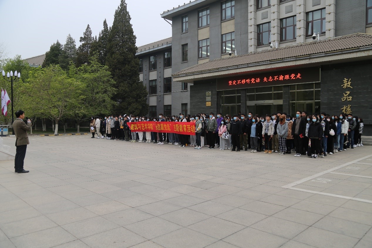 为庆祝中国共产党成立100周年,引导广大青年学生牢记使命初心,发扬红色传统、传承红色基因,澳门太阳成集团于4月12日在敦品楼前举行“永远跟党走”主题教育活动启动仪式,全院师生300余人参加。
