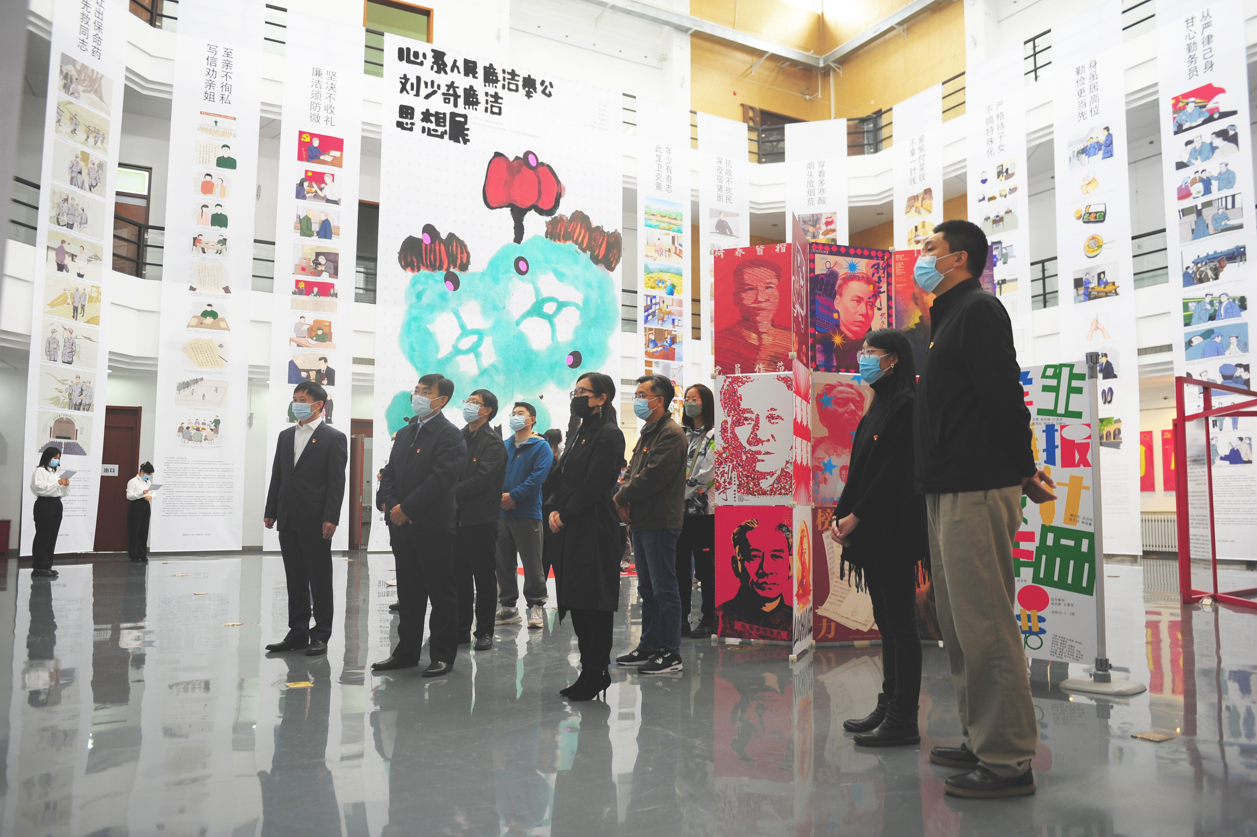 本次展览以习近平总书记在纪念刘少奇同志诞辰120周年座谈会上的重要讲话为指导,由艺术设计系教工党支部负责策划并编辑创作文案,精选刘少奇同志廉洁故事19 篇,设计学研究生党支部党员手绘插画近200 幅,视传20-1、20-2班学生创作设计海报30幅,集中展现了刘少奇同志“心系人民、廉洁奉公”廉洁思想和感人事迹。“伟人廉洁思想展”是澳门太阳成集团党委落实立德树人根本任务,充分发挥专业学科优势,将党建与教育教学有机融合,加强课程思政建设的生动实践,至今已经连续举办七届,充分发挥了廉洁文化启智润心的教育功效,已经成为太阳成官网廉洁文化建设重要品牌活动。