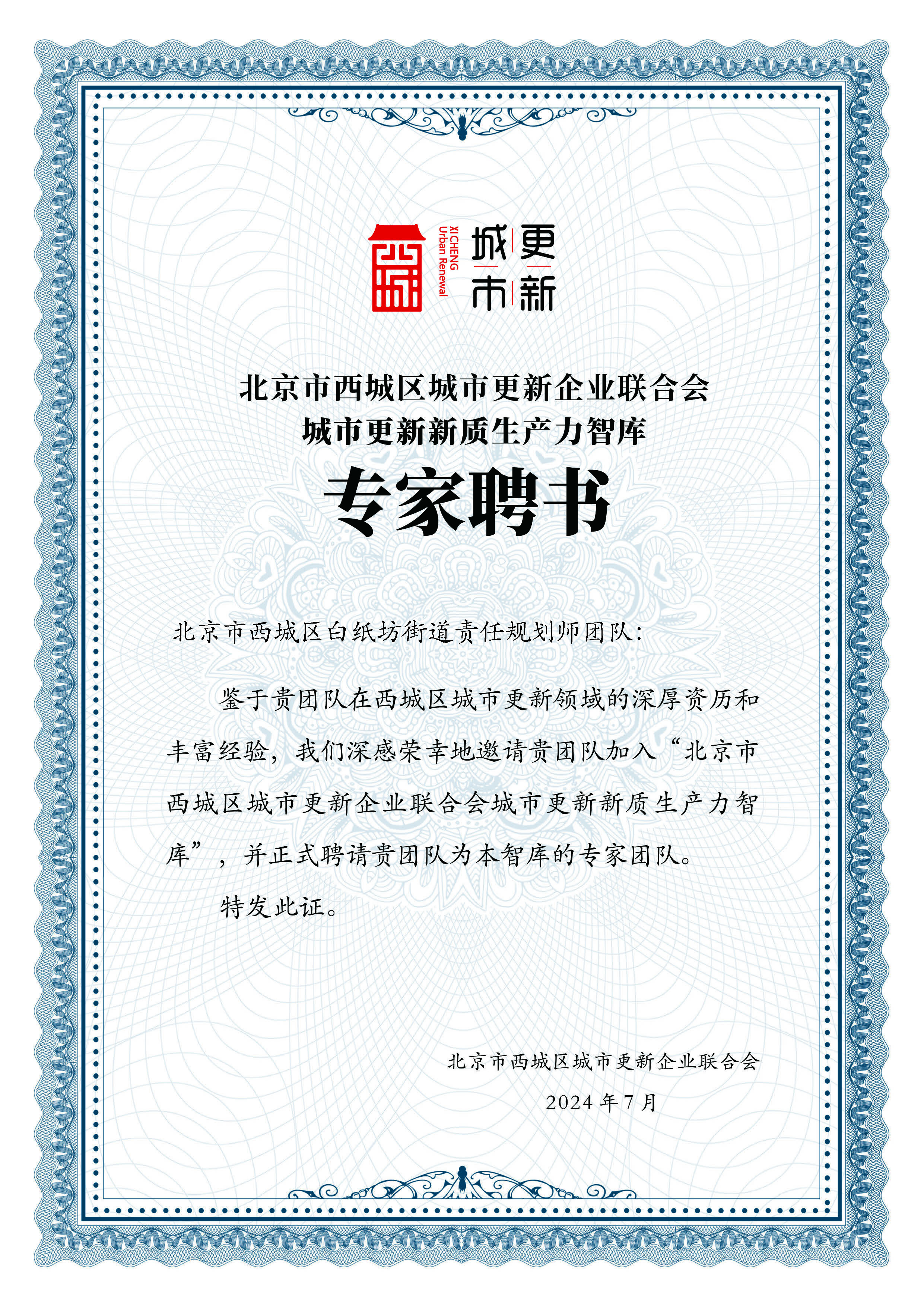 7月4日,北京市西城区城市更新企业联合会召开了“连心红墙,联手更新”第一届第二次会员大会暨城市更新新质生产力论坛。澳门太阳成集团教师梁玮男博士领衔的北京市西城区白纸坊街道责任规划师团队受邀参加论坛,并正式受聘为“北京市西城区城市更新企业联合会城市更新新质生产力智库”专家团队。