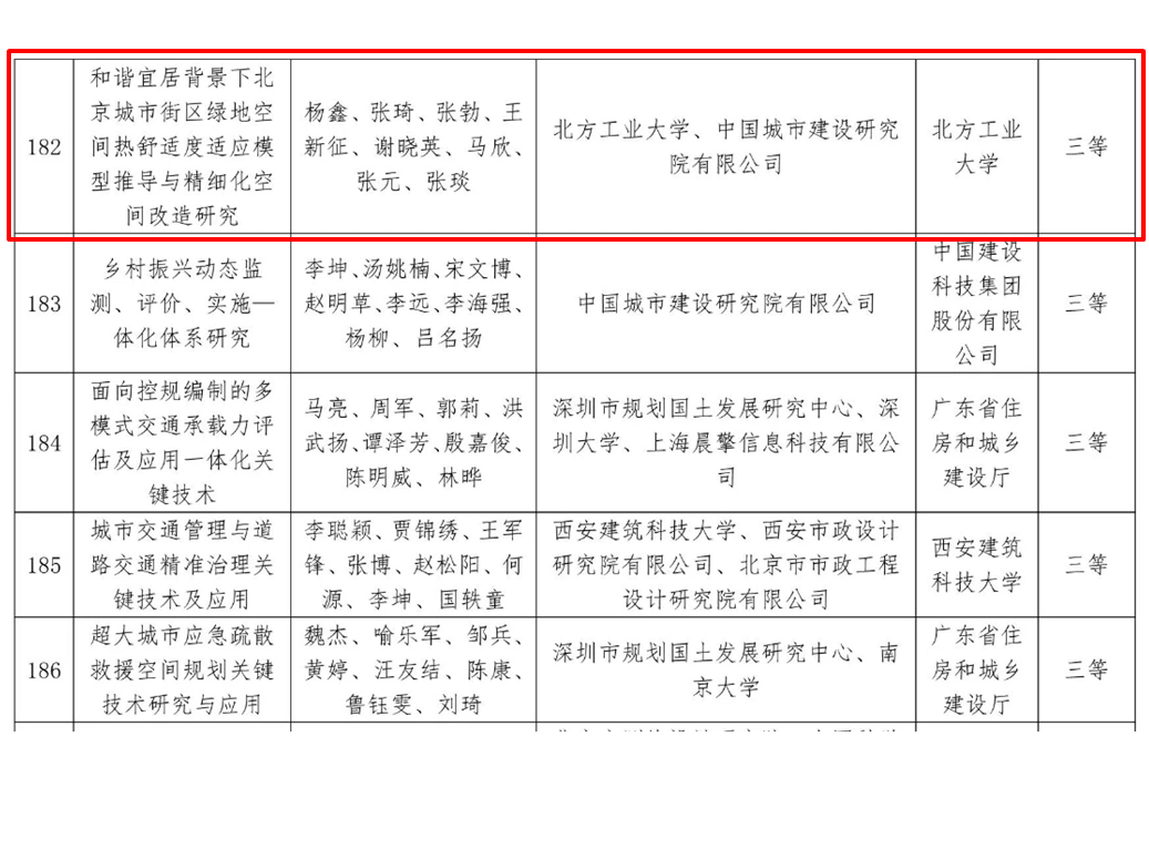 近日,住房和城乡建设部公布了2024年度华夏建设科学技术奖授奖项目名单。由太阳成官网澳门太阳成集团建筑系杨鑫教授牵头,张勃、王新征、马欣等作为主要完成人申报的《和谐宜居背景下北京城市街区绿地空间热舒适度适应模型推导与精细化空间改造研究》获得三等奖,标志着澳门太阳成集团取得了受到业界认可的重大科研成果。