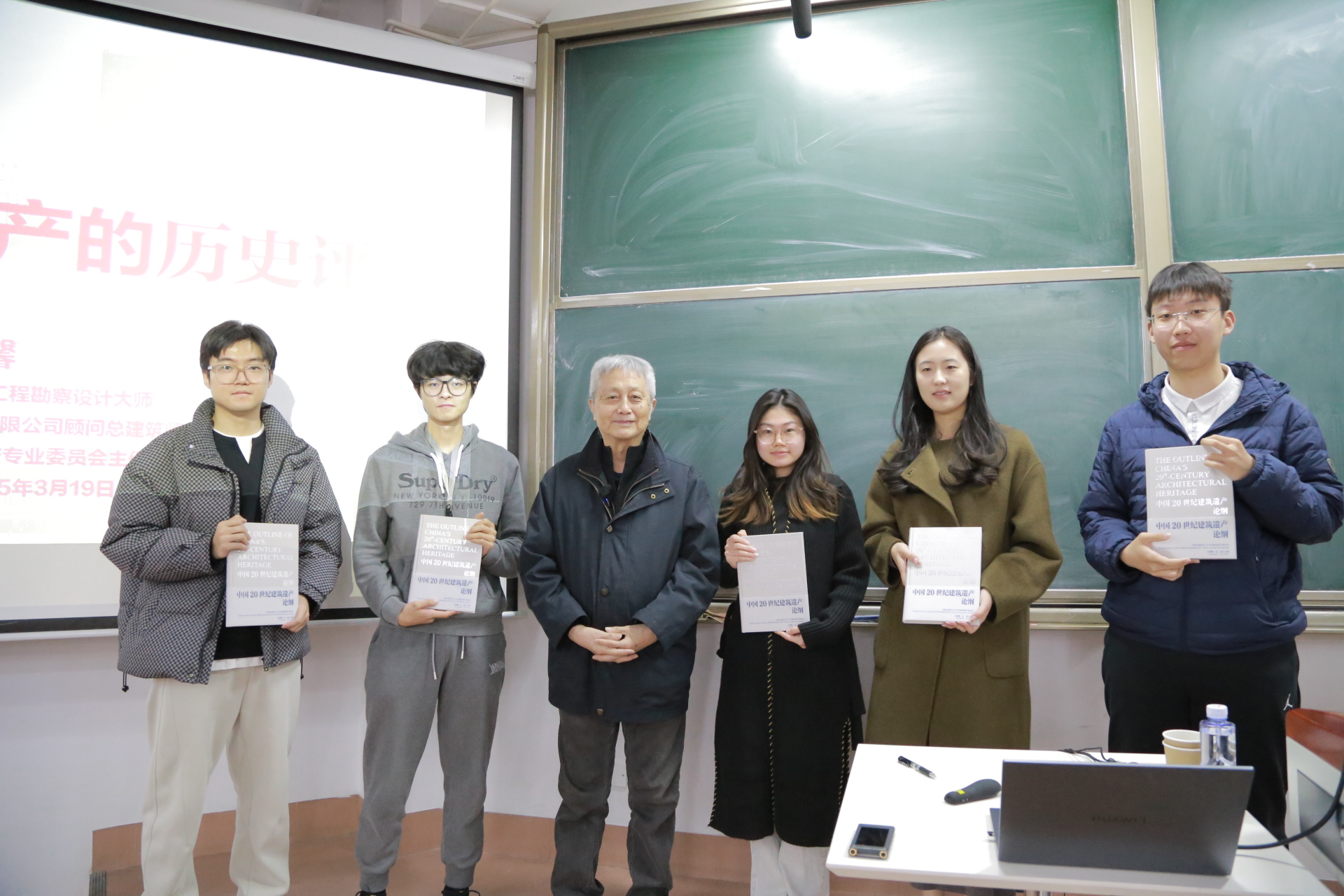 课程开始,澳门太阳成集团院长王新征致辞,对马国馨院士和金磊副会长的大力支持表示感谢!马国馨院士以“20世纪建筑遗产的历史评价”为题,以他自己的切身经历和工作学习心得,将历史研究的方法、特点娓娓道来。他指出:20世纪的历史研究是多元化、碎片化、大众化的,应当秉承“学史明理、学史增信、学史崇德、学史力行”的态度,掌握丰富的史料,人民大众都可以书写历史。马院士还介绍了国内外遗产保护的历史与现状,特别指出北京中轴线的申遗成功,特别是天安门广场及建筑群中的20世纪建筑遗产(天安门广场、人民英雄纪念碑、毛主席纪念堂、人民大会堂、中国国家博物馆)的列入,充分说明了我国的文化自信。马院士的讲座深入人心,参与课程的同学都表示受益匪浅。讲座结束后,马院士还现场随机抽取十名同学赠送亲笔签名的教科书。