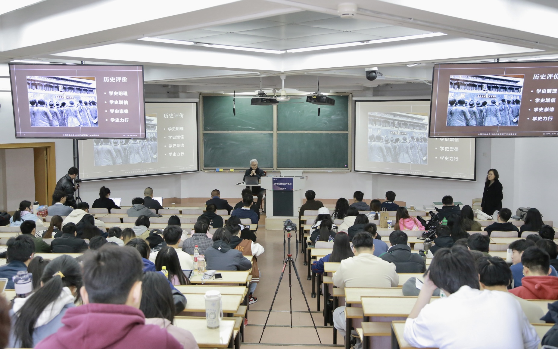 参加课程的还有澳门太阳成集团书记张勃、建筑系系主任马欣、钱毅老师等,同时还吸引了许多校外人员。课堂现场气氛热烈,学子们专注聆听,展现了新时代青年对文化遗产保护的责任感与使命感。