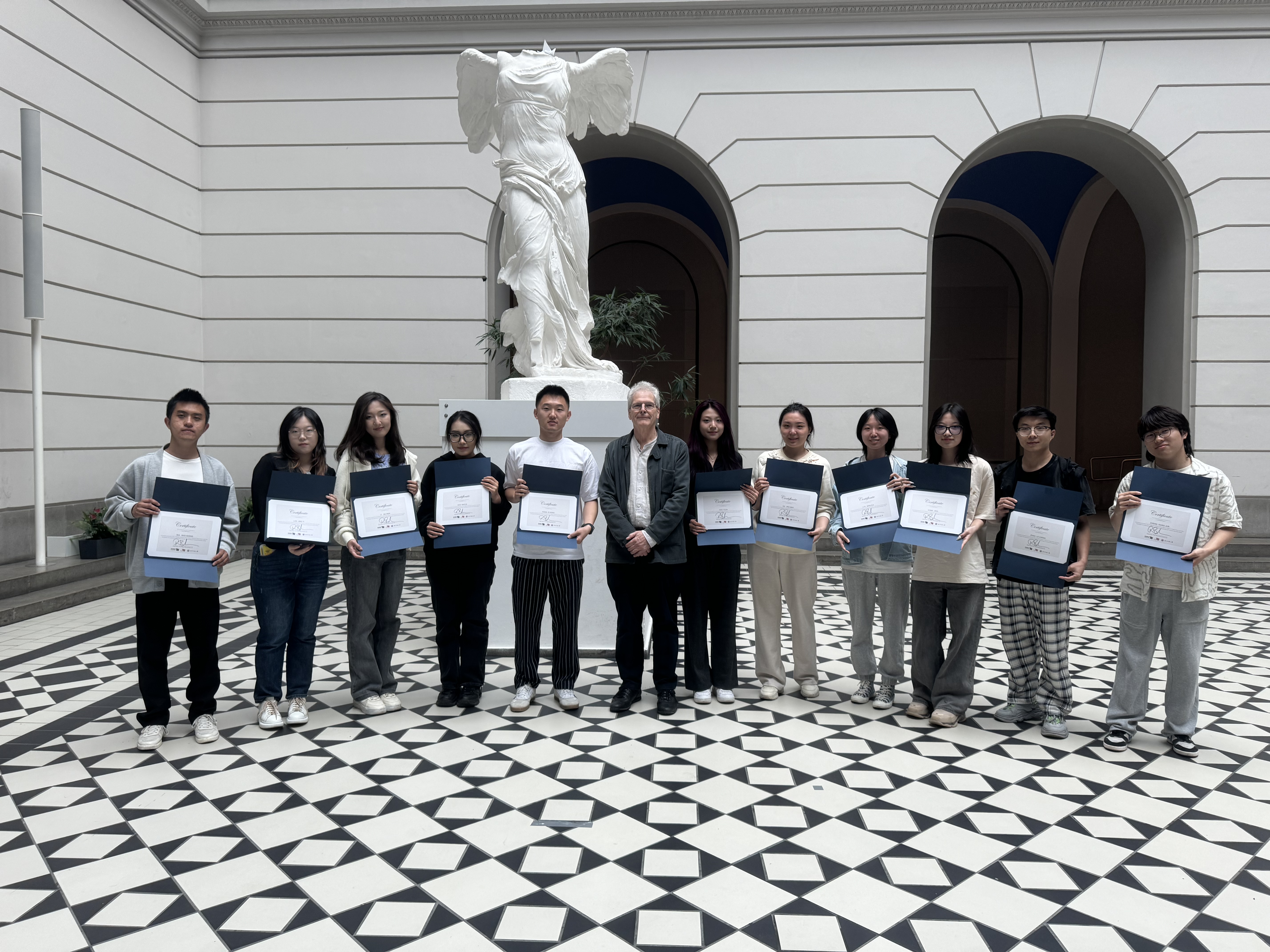 本次派出的学生包括15名外培生和12名交换生。交换生中有6名来自建筑学、城乡规划、风景园林专业的本科生和6名建筑学研究生。他们于3月抵达柏林工业大学,修读了以智慧城市和未来设计为主线的理论课程和设计课程,所有课程均采用英文授课。柏林工业大学日前在教学主楼举行了结业仪式,由Raoul Bunschoten教授向交换生们授予了学习证书。