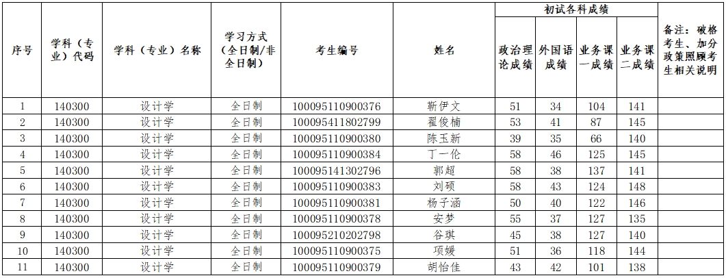 2025年硕士研究生招生考试设计学(140300)第一批次复试考生名单公示