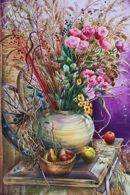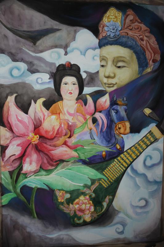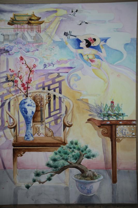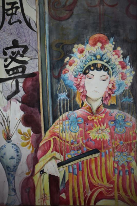我最近读了许多纳兰性德的词作,想要创作一幅气氛古老诡秘的画作——一个古老的旧桌子上摆着鲜艳的花卉,旁边站着一位清冷小生。我也会收集资料,运用其中的符号,但通过构图、色彩、意境的构造,有意的虚实对比,对小生的形象完成了自我的创作。通过多天的加工调整,完成了整个图面的突破,也完成了自我瓶颈的突破。 画画没有什么难的,我希望大家把心中多余的心情抛去,潜心于绘画这件事中。